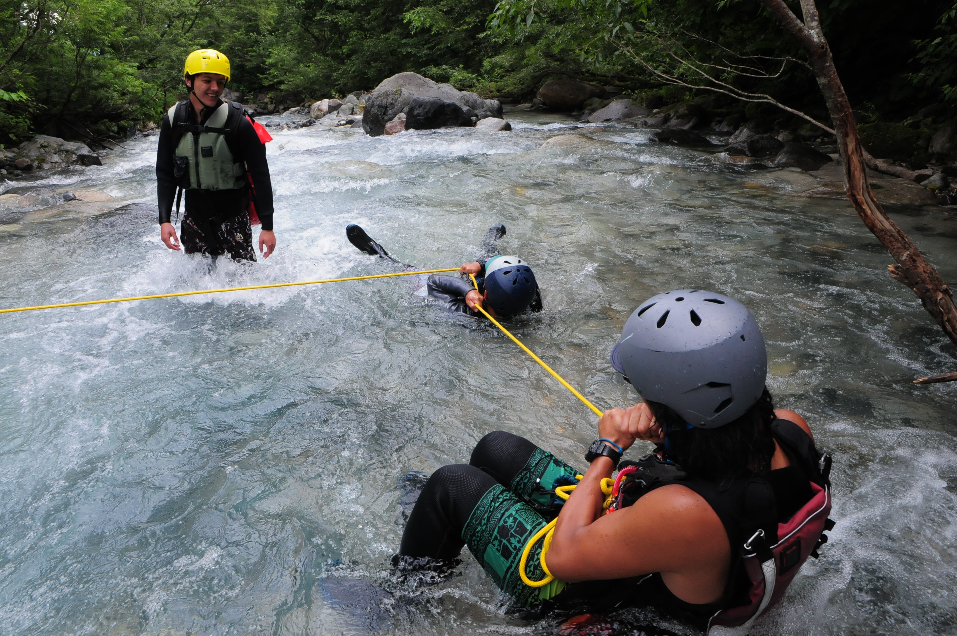 ずぶぬれになりながら川の上流からすべったり、歩いたりして降りてくるのです。